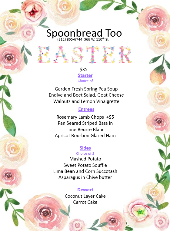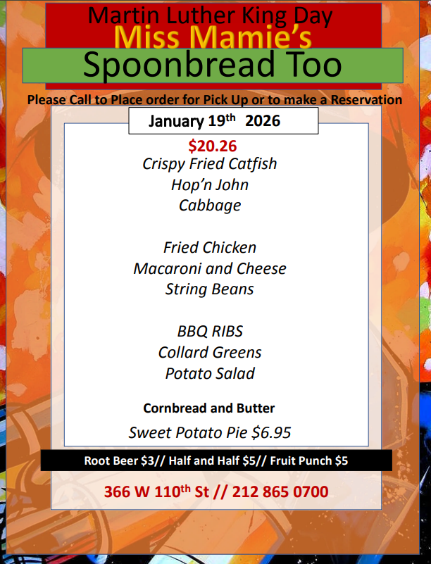 Students from nearby Columbia University, uptown church ladies, savvy New Yorkers, and VIP's (like former President Clinton) all feel at home in this inexpensive, soul-food restaurant. The owner, the Caterer and former Wilhemina model, Norma Jean Darden, serves comfort food based on family recipes from Spoonbread and Strawberry Wine, the best-selling cookbook she wrote with her sister, Carole.